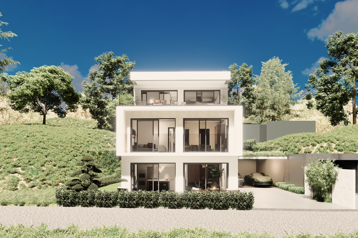 • Genehmigt ist eine sehr moderne Bauhaus-Villa mit Flachdach