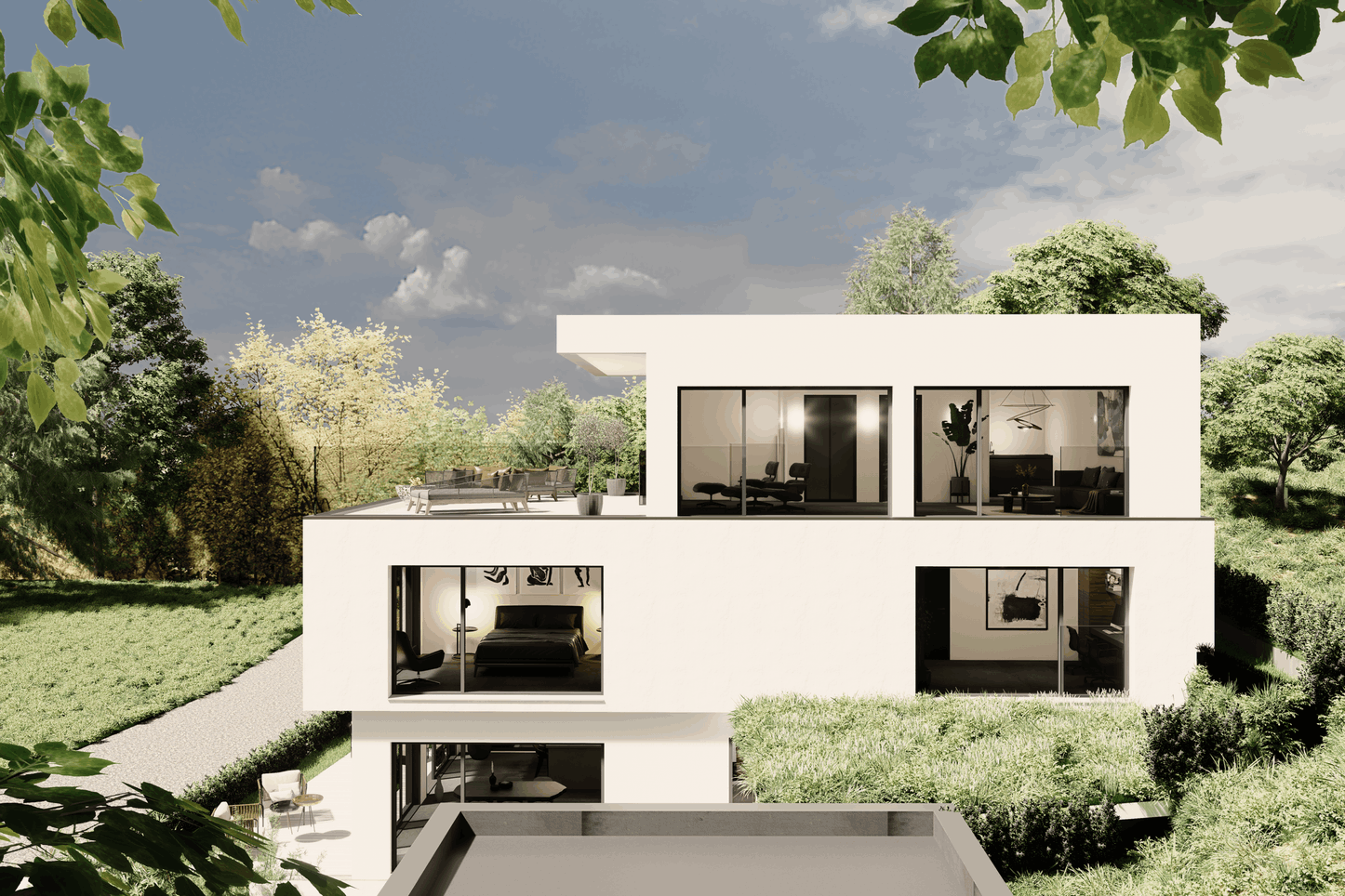 • kubische Gebäudeform, sehr modern mit Flachdach