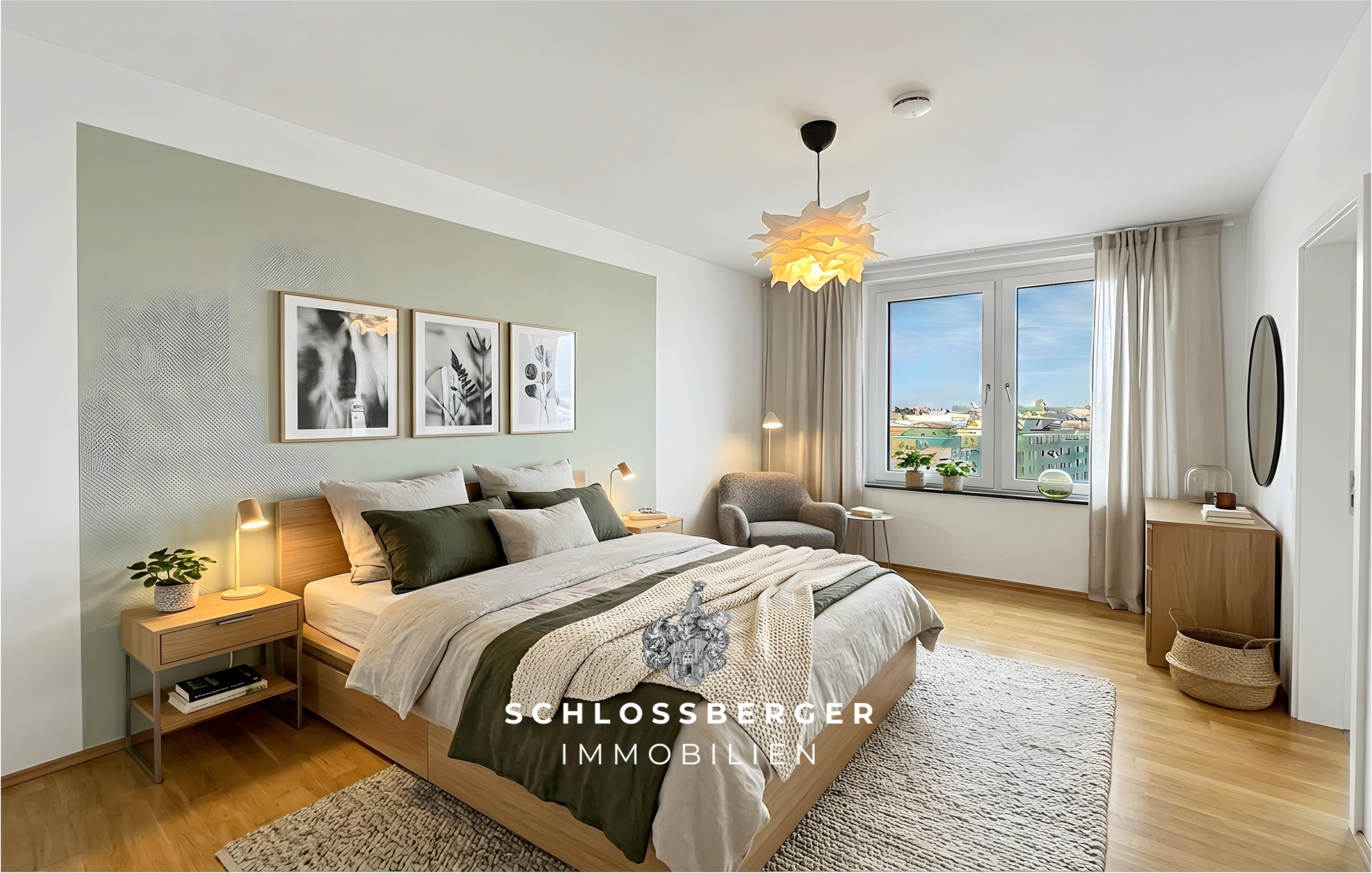 • Bodentiefe Panorama-Verglasung zur Loggia, große Fenster