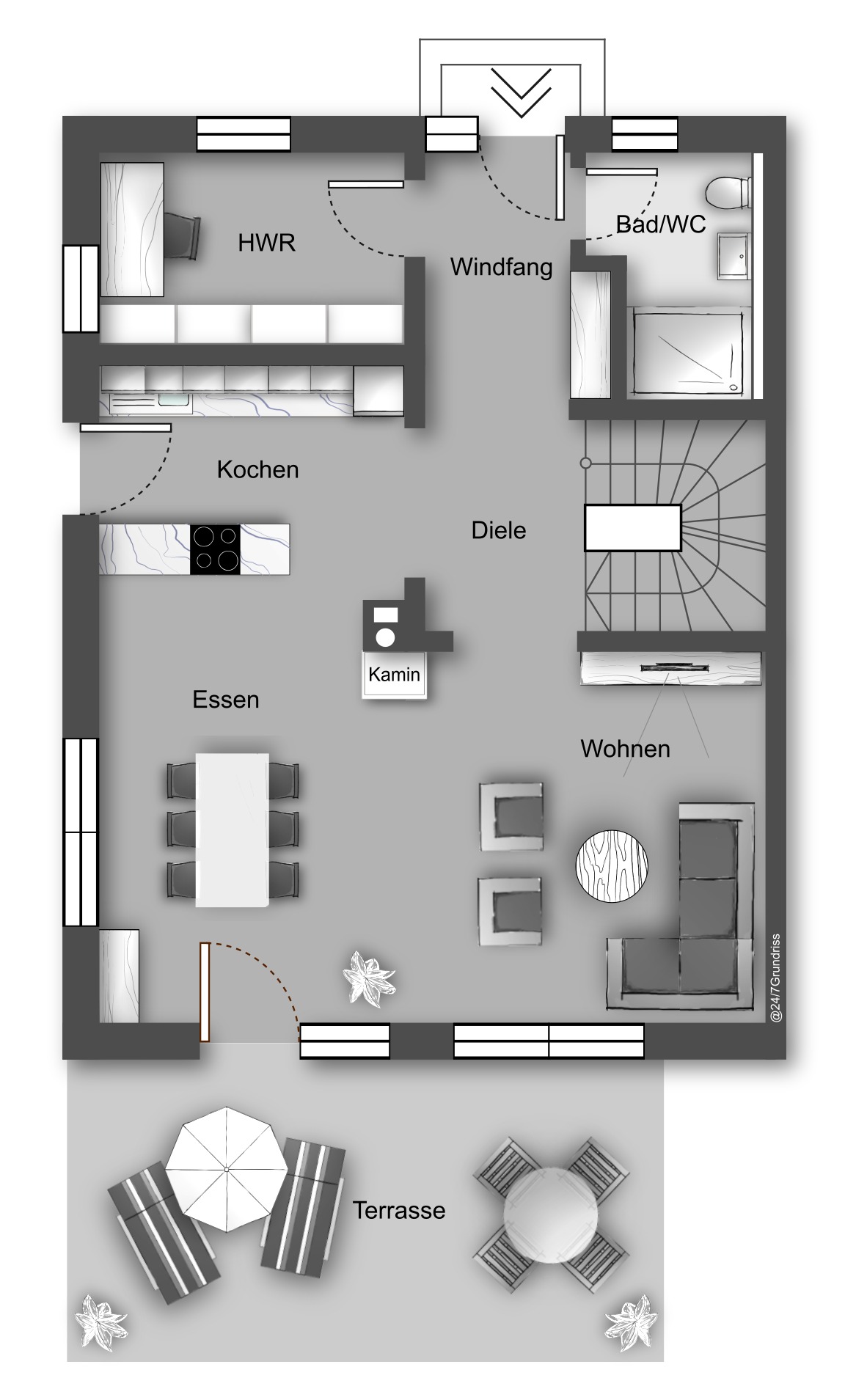 • moderne Ziegelbauweise nach KfW 55 Standard