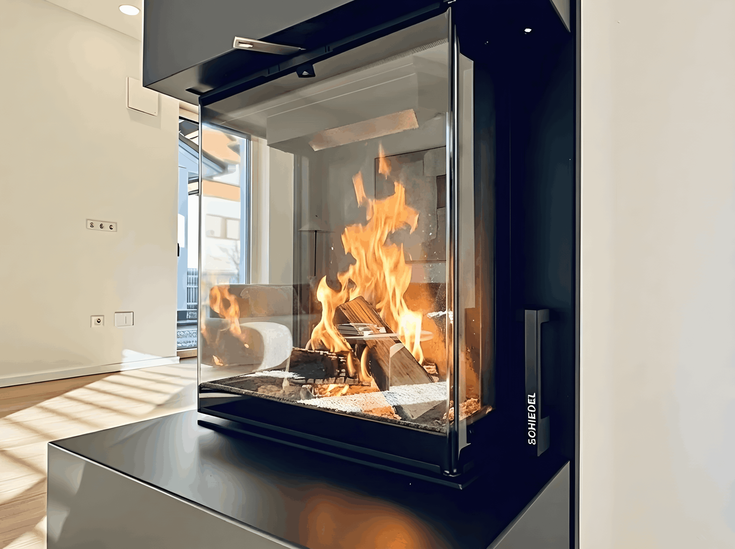 • Raumteilender Kaminofen der Fa. Schiedel im Wohnzimmer