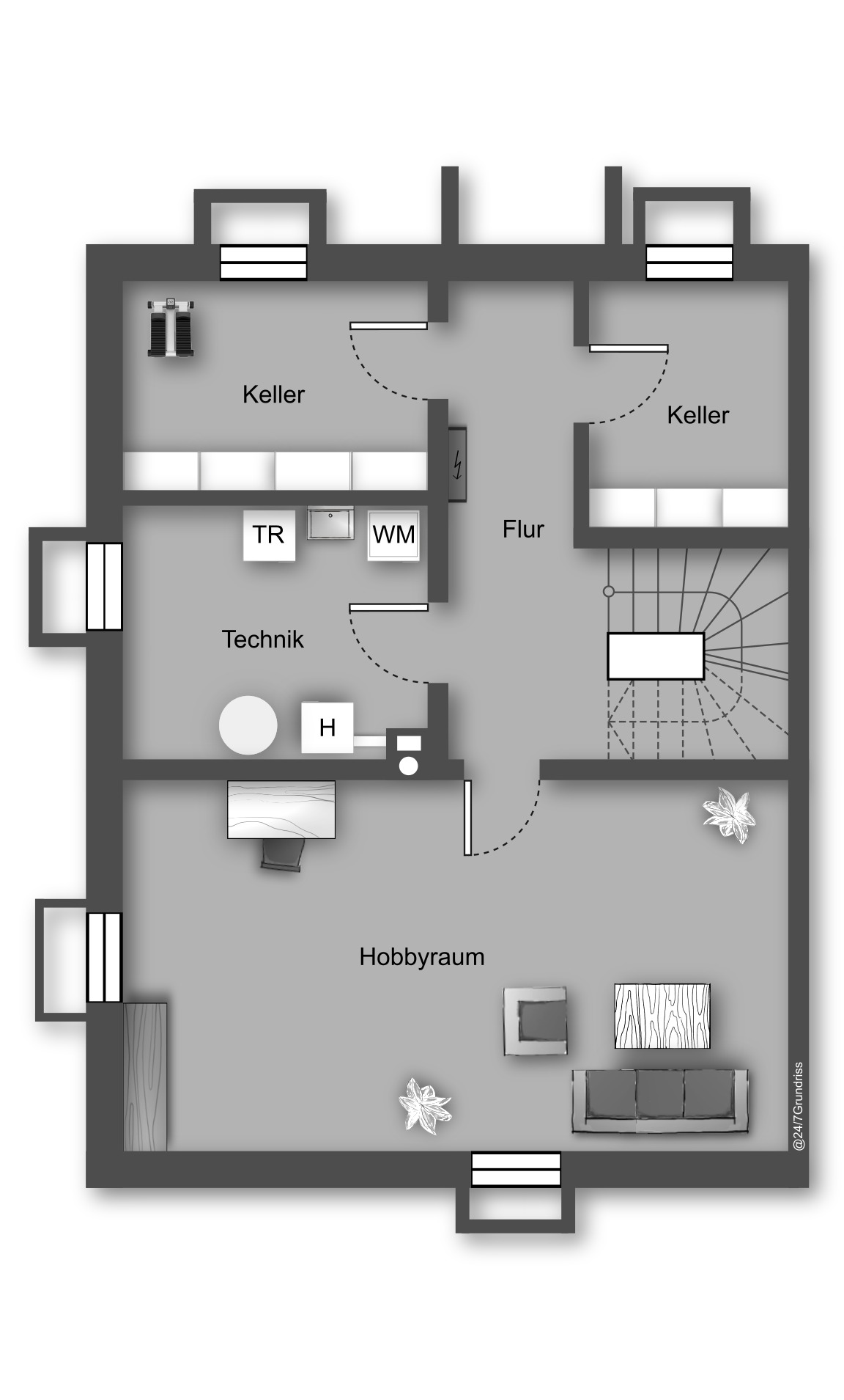 • Keller Stahlbeton in WU-Beton (wasserundurchlässiger Beton)
