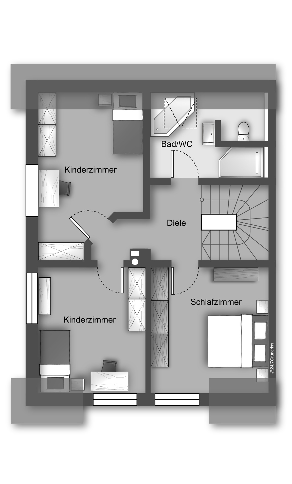 • Komfortable Fußbodenheizung im UG (Hobbyraum), EG und DG, separat regulierbar über Raumthermostate