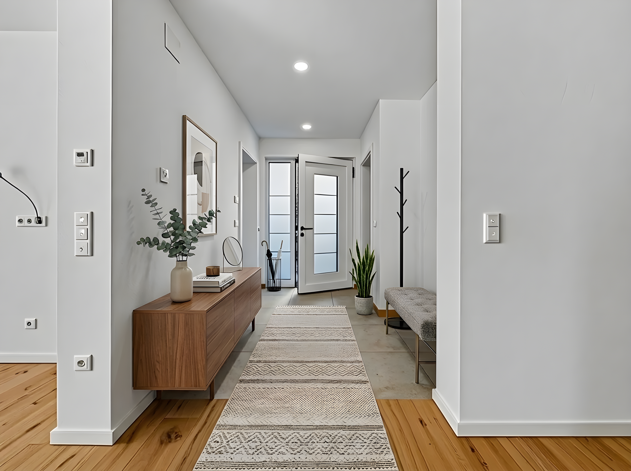 • Eingangsbereich / Garderobe Bäder: Fliesen aus Feinsteinzeug großformatig