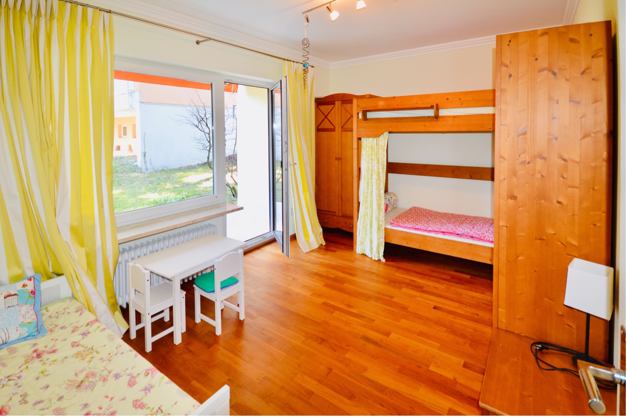 • 2 gut möblierte Kinderzimmer, eines davon mit Südterrasse und Zugang zum Gemeinschaftsgarten