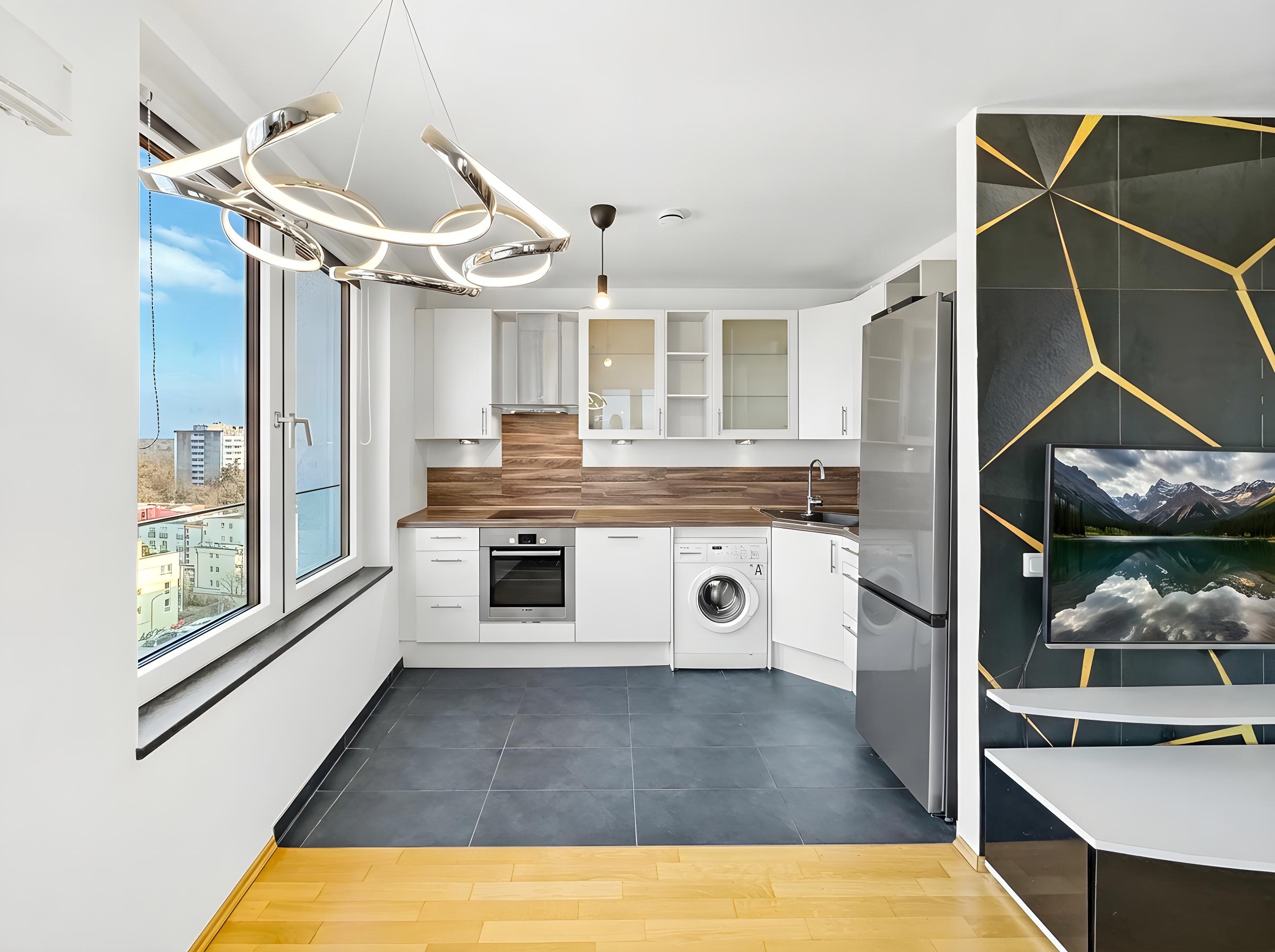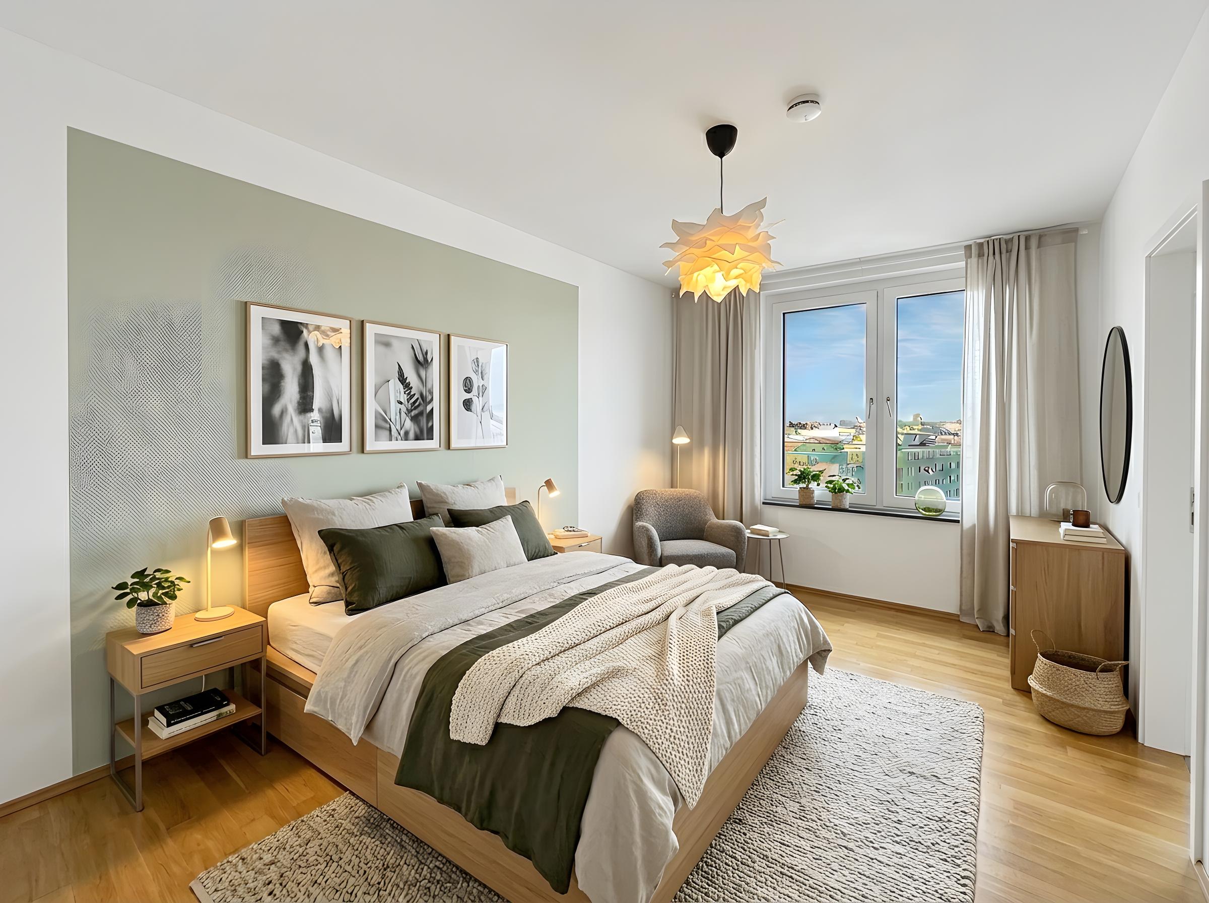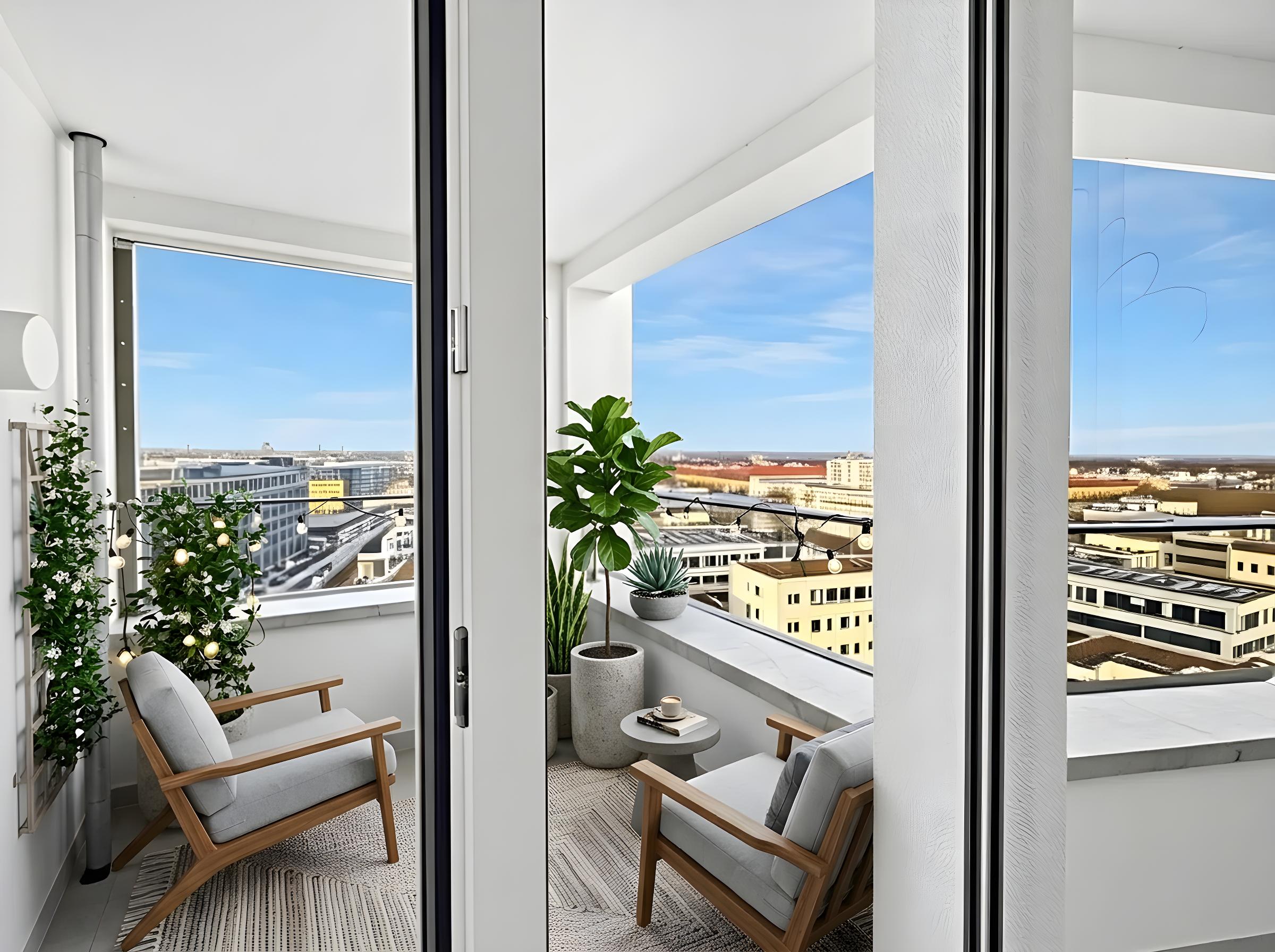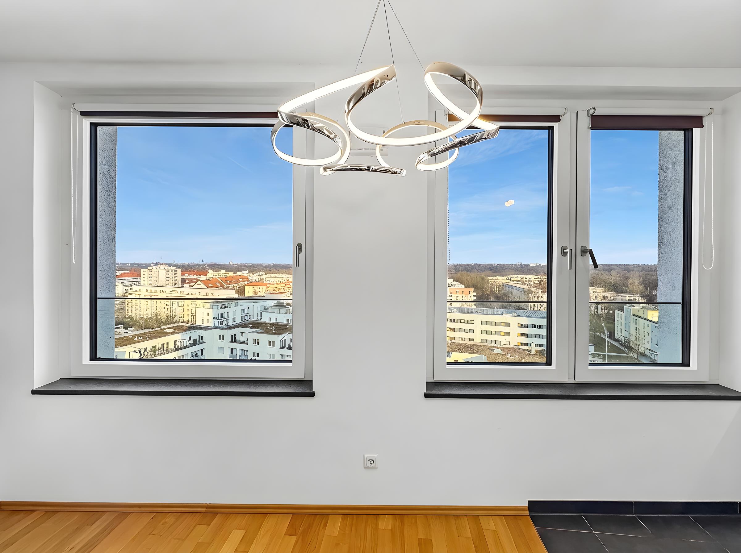 • Bodentiefe Panorama-Verglasung zur Loggia, große Fenster