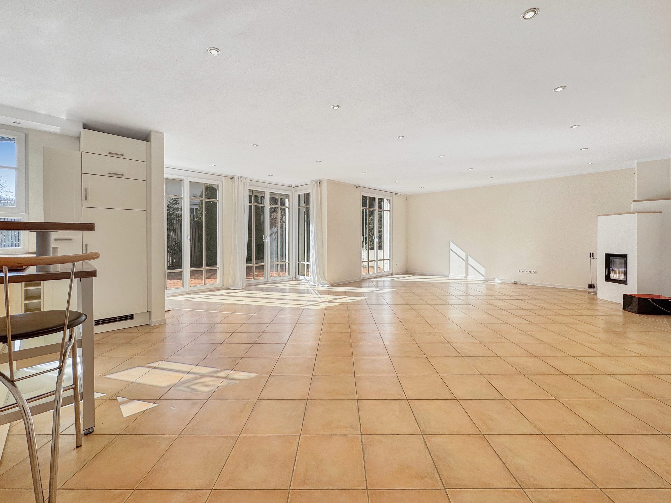 • Wohn- und Essbereich mit einer großzügigen Grundfläche von über 45 m² mit Holz-Kamin